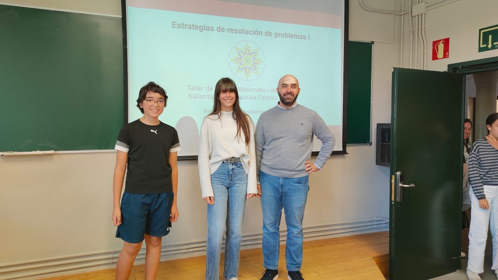 El pasado viernes 26 de septiembre dieron comienzo las sesiones del Taller de Talento Matemático de Navarra de este año académico. En esta ocasión acudieron tres miembros del proyecto SeskiMate. Niko Paracuellos y Alba Cerrada asistieron, en el aulario de la UPNA a la charla dirigida a alumnado de 3ºESO Estrategias de resolución de problemas I impartida por Juan Serrano de Rodrigo.