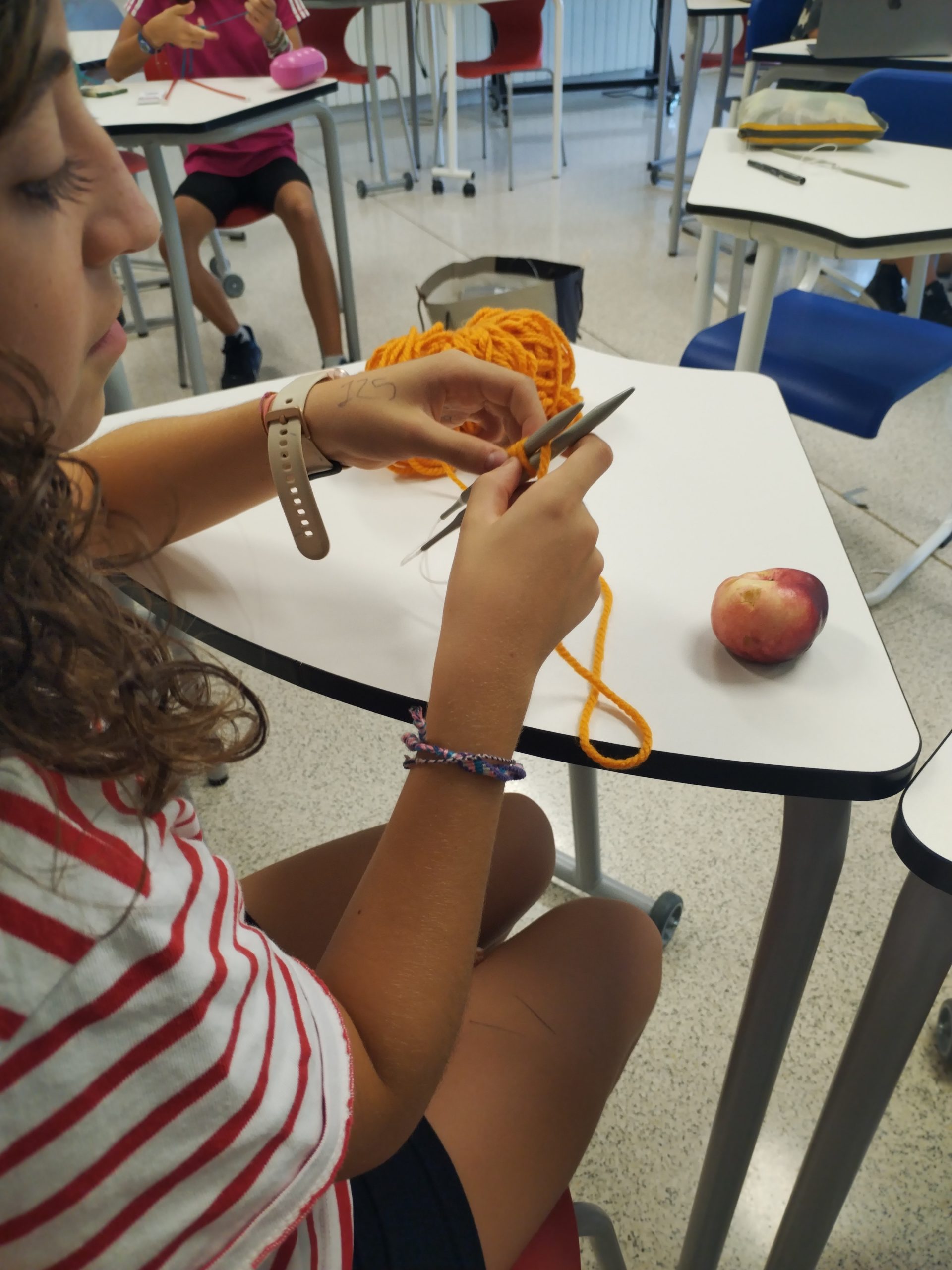 Trikotatzen ikasteko tailerra aintzira eraikinean DBH 1 eta DBH 2. mailako ikasleekin.